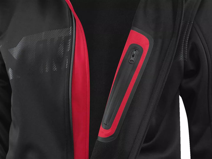 This 100% polyester, Three-layer, Water-repellent jacket will keep you warm and dry if you are trackside or out for leisure., Fully adjugs and waist band for maximum comfort., Finished with a shadow logo and red highlights, with subtle