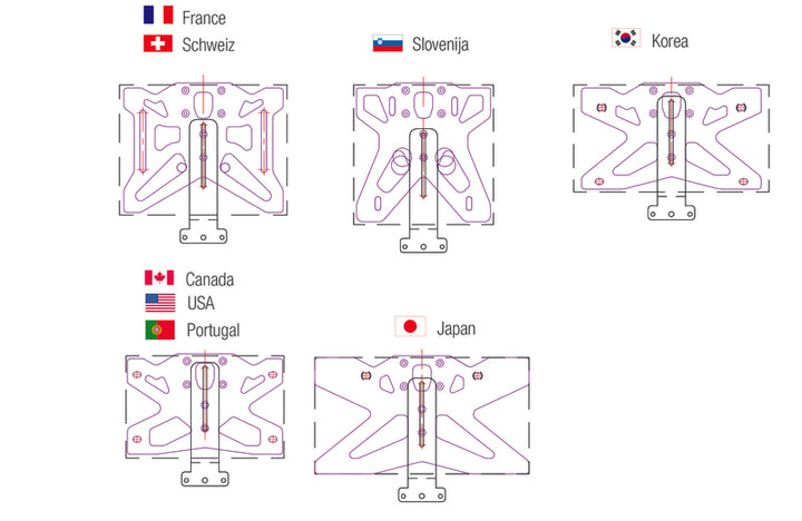 Reflector for License Plate Holderwith Fixing Bracket6 Gay Horizontal Bracket: Italy, Spain, Germanyvertical Bracket: France, Switzerland, Portugal, Slovenia Color: Red