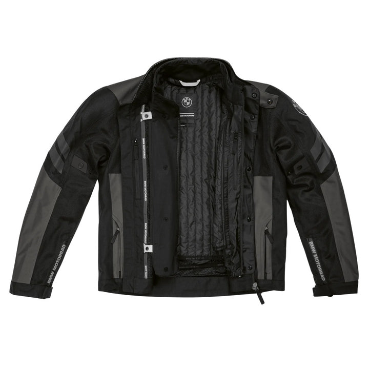 The jacket is made in Durable and respiratory material; reinforced with ventilating mesh panels and 3D spacer material on the back that improves air circulation. It integrated BMW Climate Membrane post is wind and waterproof (waterproofness 15,000 mm) but at the same time very breathable.
