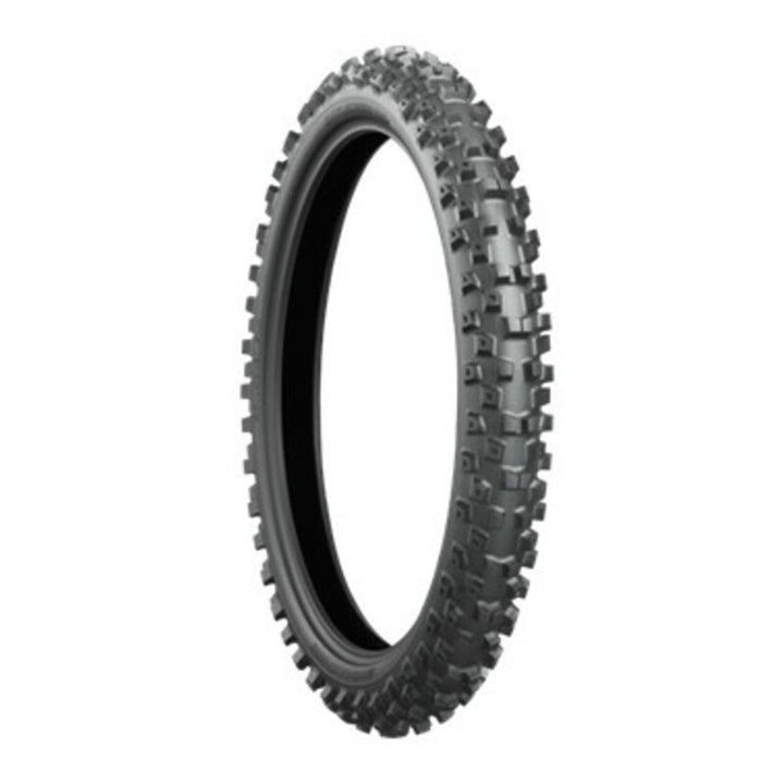 TRACTION, TRACTION, TRACTION Move forwards, not sideways, thanks to Bridgestone’s proprietary block design that delivers outstanding acceleration and braking response. PRO CIRCUIT TECHNOLOGY The Battlecross X20 integrates technology developed on the pro circuit, for all types of riders from beginners to international championship riders. AMAZING CORNERING GRIP The Battlecross X20’s incredible grip straightens out even the most challenging course, letting you corner like you’re on rails! HUGE OPERATING RANGE Developed to handle a wide range of terrain from soft to medium and even mud, this really is one versatile performer! FAST, EASY MOUNTING Fully symmetrical block alignment on the rear tyre means it can be mounted in either direction for an even faster changeover in the pits. Aspect_ratio: 100.0 Ground: Medium-Soft Homologation: NHS (Not for Highway Service) Position: Front Rim_diameter: 21.0 Speed_index: M < 130 km/h Tire_category: MX, SX Tire_family: Motorcycle & Scooter Tires Tire_load_index: 57.0 Tire_pattern: BATTLECROSS X20 Tire_Structure: X-Ply Tire_width: 90.0 Tubeless_or_Tubetype: TT - Tubetype