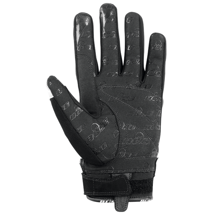 elastic inserts on the fingers and elastic fabric on the back of the hand,