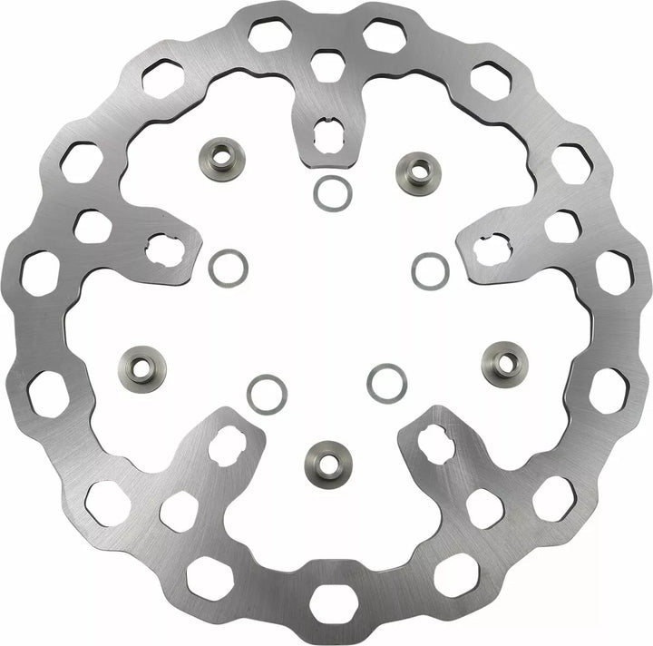 Oversize Brake Rotor Design, Bolt -On Design Works With The Stock Hub Pattern, Rotor Shape Promotes Uniform Brake Pad Wear - The Same Contact Surface Between The Pads and Disc every resolution generates Regular Wear, Less Unporses) Rounds Weight (Up to 40% Lig Hanter Thar Thar Thar. Improves The Maneuversability of the Motorcycle, Increased Perimeter Surface Design Generates More Cooling Surface Around The Rotor for Better Temperature Dissipation, Brake Caliper Relocation Bracket's Not Included.