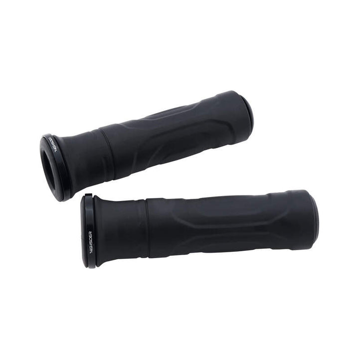 The Stylish 7/8 Inch Rubber Grips Highsider Goma-Rs with removable end caps Allow the Mounting of Handlebar End Turn Signals, Handlebar End MirRors or Handlebar Weights. With the Grips You Give Your Bike The Noble Highsider Look and Enhance It Visually.