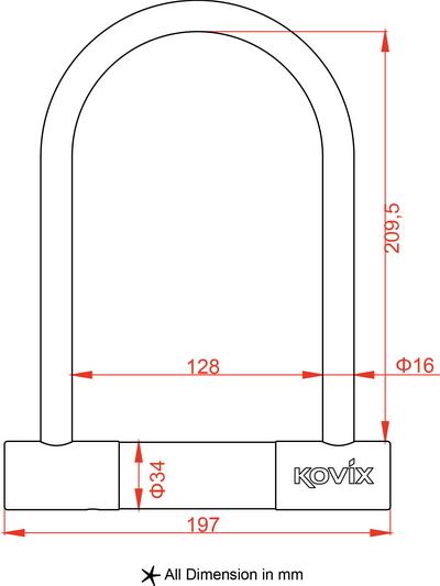Kovix KTL16 U-Lock Alarm Strong Body Built in 120dB Alarm System On/Off Switch