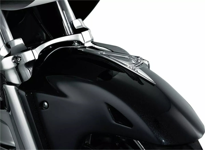 ADDS Some 40s and 50s Vintage Style, Lightweight ABS Design with a Chrome Finish, Simple Peel-Andstick Application, Measures 8-1/2 "L x 2-5/8" W, Fits on All Front Fenders with approximately 15-1/4 "radius