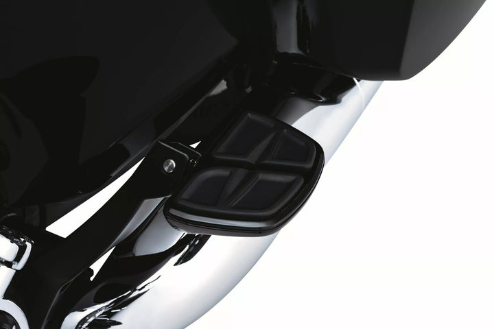 Ideal for runs or passenger, Combine the size and convenience of a peg with the comfort of a full-size floorboard, can be positioned forward, back or center at almost any angle utilizing spined adapters, designed to coordinate with other kinetic