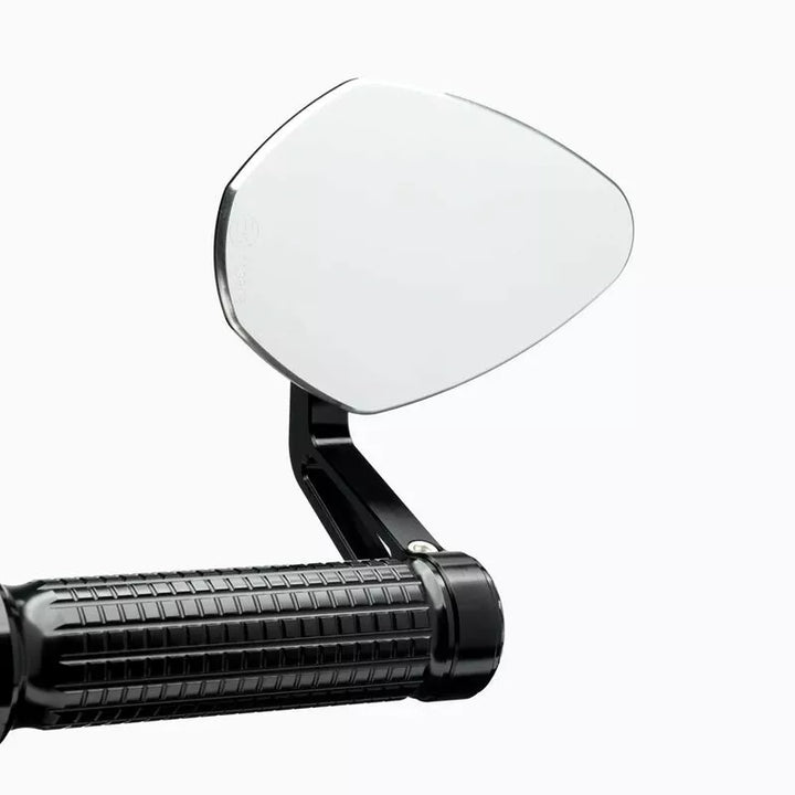 The Handlebar End Mirror Can Be Mounted Above or Below the Handlebar. The Angle of the Mirror Arm Is Rigid., Our Glassless Mirror Series Mo.view is Unique in the World. The Special Feature of Our Mirrors is the Patented Mirror Surface, Which Is Worked Directly From the Metal of the Body. The Aluminum Itself is the Mirror Surface., The Mirror Body Itself Beces Very Thin and Light, Creating a Weightless Design With No Rim or Frame. The Convex Mirror Surface is Manufactured by Fly Cutting Using Diamond Tools On Ultra-precision Machines in Berlin. It is then made resistant to oxidation, corrosion and abrasion by a complex plasma coating in a vacuum., The mirror body, mirror arm and the clamp for the handle end are milled on cnc machines from the solid aluminum and anodize high quality. All Screws are Made of Stainless Steel. The precise ball joints the Comfortable and Very Stable Adjustment of the Mirror. Glass Breakage or Fallen Out Glasses Are Simply Not Possible., The Handlebar End Mirror Can Be Mounted Above or Below The Handlebar., The Small Arm Can Be Swivelled. , The Mirror is suitable for the right and left side. Mounting is Directly on the Handlebar End (22 mm and 1 inch) or if the grips and fittings can not be moved, using the mo.view bar adapter., Mirror Body Width: 122 mm., Mirror Body Height: 83 mm., Thick of the Mirror Arm Head: 4.5 mm., Clamp Diameter: Can be used for 22 mm and 1 inch handlebars., CLAMP WIDTH: 12 mm., Weight: 156 g., Scope of Delivery: 1x Rear-View Mirror Mo.view Sport 130 (With ece marking) With Arm, 1x Clamp and Mounting and Mounting and Mounting and Mounting and Mounting Instruation Instru