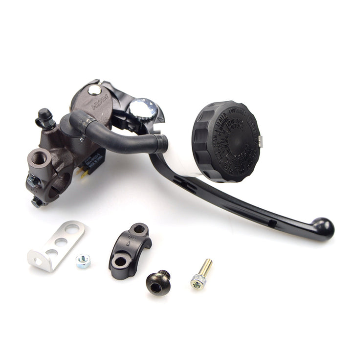 The bronze colored (brown) body in combination with one Black handle Provides a unique and elegant expression that stands out - without being flashy. The brake cylinder is made in forged aluminum (forgé) To be both light and extremely durable. Comes complete with External reservoir, Stolate clip and Brake contact.