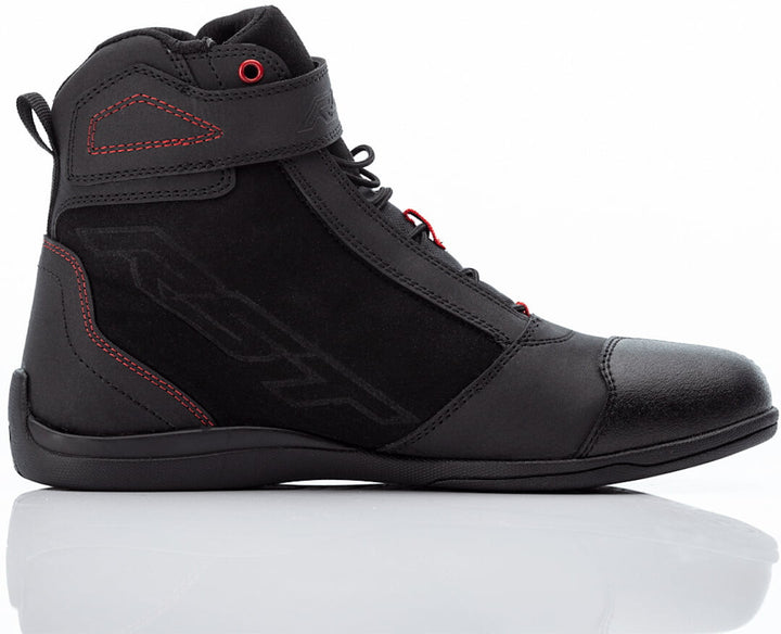 This sneaker has a flatter sole that is easier to walk around in. Made of heavy microfiber and reinforced with a ballistic fabric, the shoe has integrated heel and ankle protection and a rubberized gear plate for increased comfort.