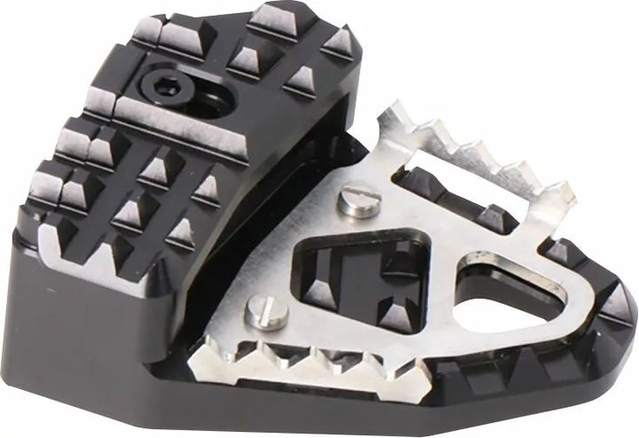 The Extension for Brake Pedal is Ideal for Off-Roading: It Enhances The Original Brake Arm Treat and Guarantees A Safe, controlled use of the brake. , When Standing, The Angle of Your Knee Changes, So Your Foot Cannot Put As Much Pressure on the Smaller pedal. , The extension of husbands it possible for the contact surface to be both broader and higher., Thanks to the raised contact surface, your foot is angled more shals, so it can reach and control the brake arm more easy, even when standing. , That Means the Extension for Brake Pedal Offers Better Safety and Better Control Over the Realar Brake., When Off-Roading, You Often Alternate Between Seated and Standing Positions. , In Addition to the Raised Surface, The Extension for Brake Pedal Features a Widacts Surface. , This is equipped with a ridged Surface, so it offers improved grip when the arm Surface is dirty or wet., Enhances the original Brake Pedal, Raised and wider Surface, Improved Grip Thanks to Ridged Surface ヨ Even Surfae Vet and Dirty