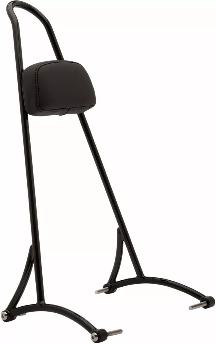 Klassinen tyylinen, yksiosainen sissy-baari, tukeva, tig-häätelty teräsrakenne, kiinnitys lokasuojakiskojen ulkopuolelle asennuksen ja poistamisen helppoa varten, sisältää kompaktin mustan vinyyliparin (mitat 6 "W x 3-1/4" H)