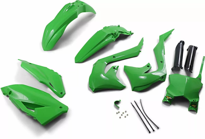 Sisältää suorituskyvyn etuosan, stadionin etulukulevyn, voimankulun jäähdyttimen kuoret, sivupaneelit, tehonkulun takaosan lokasuojat ja haarukkavartijat (ellei toisin mainita), injektiota tarkkaan istuvuuteen ja viimeistelyyn, valmistettu Yhdysvalloissa.
