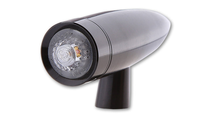 Highsider Mono Bullet LED on yksi kompakti ja tyylikäs takavalo yhden kanssa Tehokas LED -lamppu ja Selkeä lasi, upotettu vankkaan metallitaloon. Minimalistinen muotoilu tekee siitä täydellisen kaikkeen Risteilijät ja skootterit urheilullisille moottoripyörille.