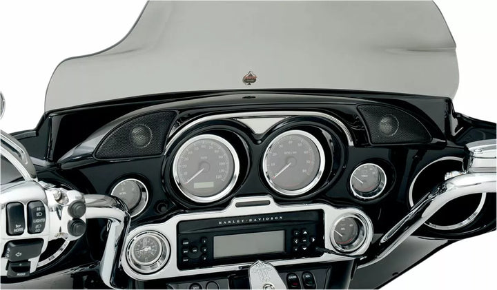 Täydellinen lisäosa-tweeter -sarja, joka kaksinkertaistuu koristeellisella kromikoristeella olevalla korostuskappaleella (mukaan lukien), purkaa helposti maalaamaan räätälöityjä maalattuja selkeitä, musta "katso" Grills Sisältää kaikki HogTunes-kaiutinjärjestelmät, 98-13 varastojärjestelmät tai polkupyörät jälkimarkkinoidulla autoradiolla, sisältää räätälöityjen 50 watt (RMS) korkean työntöhäiriöiden. Crossovers, parantaa radikaalisti selkeyslaitteita, porausmallia ja plug-and-play-johdotuksia sisältyy laatikkoon