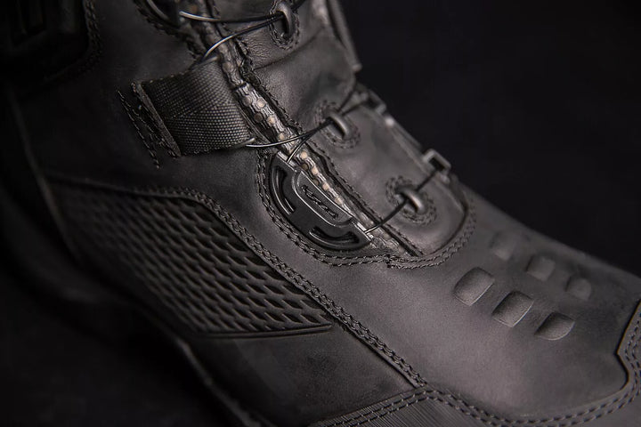 Ensiluokkainen nahkainen yläosa on vedenkestävä viimeistely, hengittävä tapahtuma Vedenpitävä vuoraukset auttavat keetiä kuivia, erittäin kiinnitettyjä öljy-/ liukastumiskestäviä kumipohjaa tarjoavat moottoripyörän huipun suorituskyvyn, avoimen solun polyuretaanipohjaiset jalat, BA. Mukava istuvuus, kaksois D3O® -insertit tarjoavat nilkan peittoa, vahvistetut kumivarpakorkit, heijastavat kantapää aksentit ja vaihtamisliitäntät Nubs