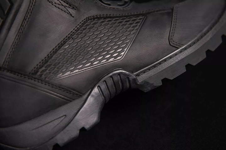 Ensiluokkainen nahkainen yläosa on vedenkestävä viimeistely, hengittävä tapahtuma Vedenpitävä vuoraukset auttavat keetiä kuivia, erittäin kiinnitettyjä öljy-/ liukastumiskestäviä kumipohjaa tarjoavat moottoripyörän huipun suorituskyvyn, avoimen solun polyuretaanipohjaiset jalat, BA. Mukava istuvuus, kaksois D3O® -insertit tarjoavat nilkan peittoa, vahvistetut kumivarpakorkit, heijastavat kantapää aksentit ja vaihtamisliitäntät Nubs