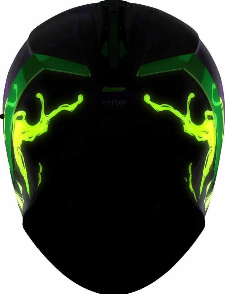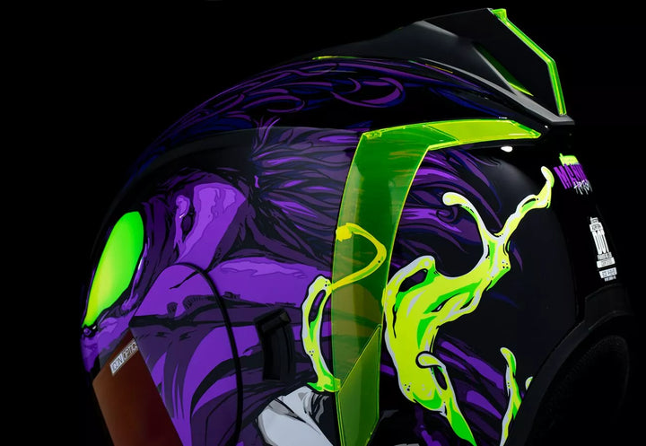 Jatkuva tuuletusjärjestelmä, FAG-Free Icon Optics ™ -suoja Rapid-Release ™ -järjestelmällä, injektiovalettu polykarbonaattikuorella lujuutta varten, sisäinen ilmavirtageometria, veistetty kaularulla, prolock ™ switsch, lukitusvaiheessa oleva swequor-visiori on käytettävä vain, kun päähenkilö on täysin suljetussa asennossa, remov-muovattua hengitystä, removice-vetypesää. Liner, sisäiset kaiutintaskut toimivat ICON: n R.A.U. Bluetooth -laite sisältää Dark Smoke Dropshield ™ ja Rubatone Black SpeedFin ™