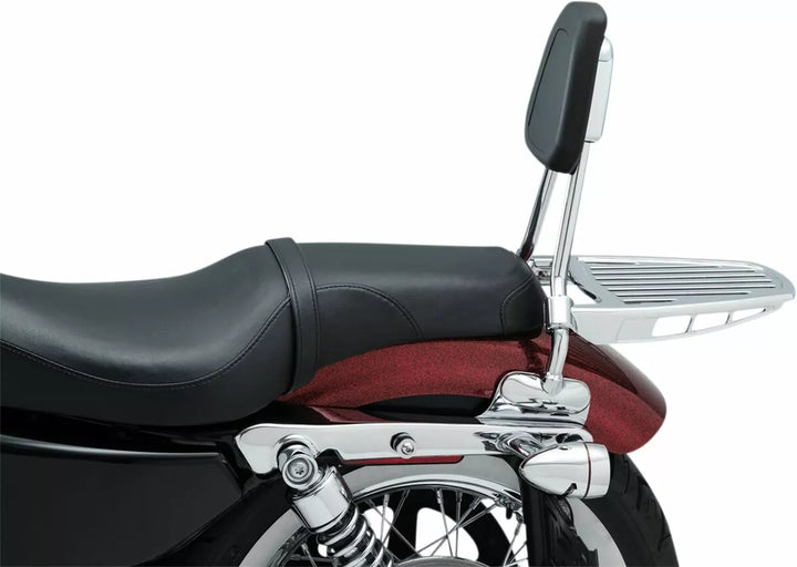 Kestävä kaikki teräsrakenne (kiinnikkeet ja pystysuorat) premium-kromipinnoitteilla, helppo asentaa mukana toimitetuilla laitteilla ja kiinnikkeillä, sisältää säästä valmistettua pehmustettua selkänojaa ja UV-kestäviä pus-materiaalimatkatavarotelineitä (#1510-0960) myydään erikseen