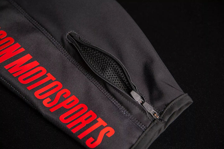 ICON® Sport Fit, kestävä 420D -polyesterirunko sisäisillä vahvistuksilla, Airfly ™ -keskuksen etuosassa oleva mesh -paneeli, rinta- ja takaosan vetoketjulliset tuuletusaukot, säilytettävä huppu, tuuletetut mansetin vetoketjut, vyötärön säädöt säätöjohto, säänkestävä taso