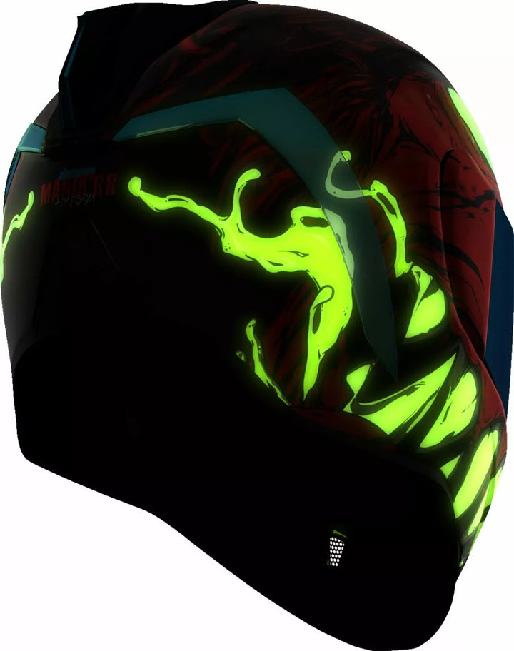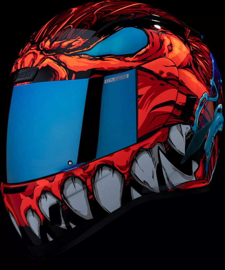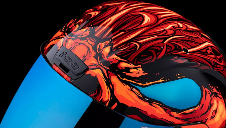 Jatkuva tuuletusjärjestelmä, FAG-Free Icon Optics ™ -suoja Rapid-Release ™ -järjestelmällä, injektiovalettu polykarbonaattikuorella lujuutta varten, sisäinen ilmavirtageometria, veistetty kaularulla, prolock ™ switsch, lukitusvaiheessa oleva swequor-visiori on käytettävä vain, kun päähenkilö on täysin suljetussa asennossa, remov-muovattua hengitystä, removice-vetypesää. Liner, sisäiset kaiutintaskut toimivat ICON: n R.A.U. Bluetooth -laite sisältää Dark Smoke Dropshield ™ ja Rubatone Black SpeedFin ™