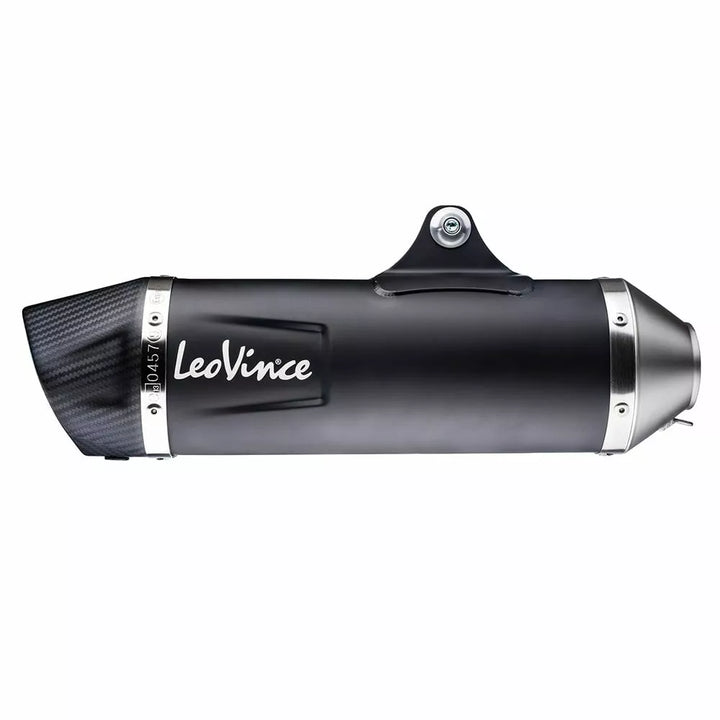 Nero pakojärjestelmä, aggressiivinen tyyli ja terävät linjat., Leevince Nero on moottoripyörien ja maxi-skootterien äänenvaimennin, jolla on tumma ja moderni ilme, seurausta Leevincen jatkuvasta laatuteräksistä ja yksinoikeudellisista prosesseista. Kirkas pinnoitus UV-vastus, metallikeraamiset mustat maalit, mattapintainen viimeistely, laser syövytetty leovince-logo