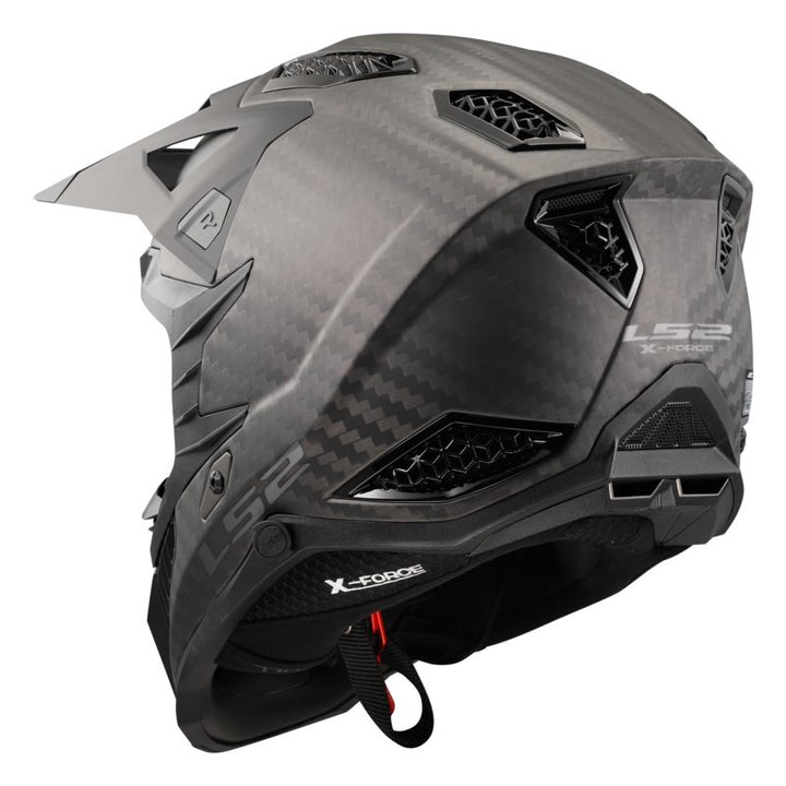 LS2 Cross MC -kypärä X-Force Carbon yhdistää aggressiivisen suunnittelun, turvallisuuden ja mukavuuden, mikä tekee siitä erinomaisen valinnan kuljettajille, jotka etsivät luotettavaa ja korkean suorituskyvyn kypärää maastoajoa varten.