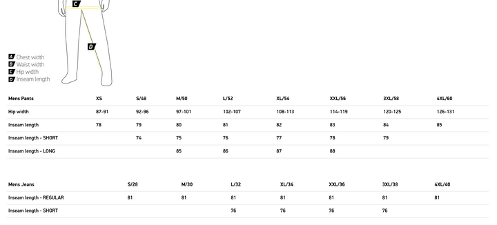 Suojaus: Aramid -vahvistukset lantioissa, polvissa ja selässä. Säädettävä CE -tason 1 polvisuoja. CE -tason 1 lonkkasuojaus.