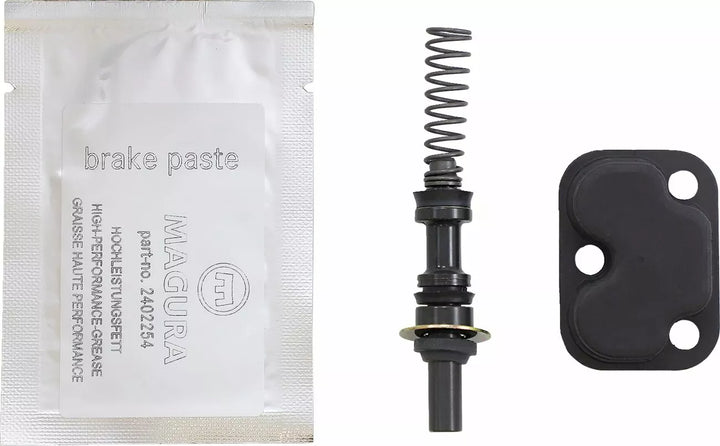 Kaikki tarvittava koko pääsylinterin peruskorjaukseen, pakkaus sisältää männän tiivisteillä ja jousilla, männän palkeilla, säiliön palkeilla, tiivisustusrenkaalla männän kiinnitysruuville ja silikonijarrupastalle
