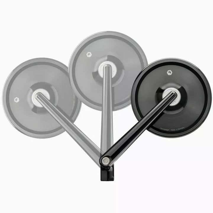 Peili kääntyvällä peilivarsilla ja määritelty 45 ° lukituskulma on täydellinen kapealle kohdalle kuljetuksen aikana tai kun autotallissa on avaruusongelmia. Glasless Mirror -sarjamme Mo.View on ainutlaatuinen maailmassa. Peilien erityispiirte on patentoitu peilin pinta, joka työskentelee suoraan rungon metallista. Alumiini itsessään on peilin pinta., Peilirunko itse on erittäin ohut ja kevyt, mikä luo painottoman mallin, jolla ei ole vanteita tai kehystä. Kurvapeilin pinta valmistetaan kärpäsleikkaamalla timanttityökaluilla Berliinin erittäin tarkkuuskoneissa. Sitten se tehdään kestäväksi hapettumiselle, korroosiolle ja hankaukselle tyhjiössä. Peilirunko ja peilihylly jauhetaan kiinteästä alumiinista CNC -koneissa ja anodisoidaan korkealaatuiseksi. Kaikki ruuvit on valmistettu ruostumattomasta teräksestä. Tarkat pallaliitokset peili säädetään mukava ja erittäin vakaa. Lasin rikkoutuminen tai lasin putoaminen ei yksinkertaisesti ole mahdollista. Flip -sarjan peilien erityisominaisuus on kääntyvä peilivarsi, jossa on määritelty lukituskulma 45 °: n välein. Tämä mahdollistaa peilin kallistumisen tarpeen mukaan vaihtamatta peiliasetusta., Erittäin käytännöllinen kapeiden kohtien, avaruusongelmien suhteen autotallissa tai kuljetuksessa. Lukitusmekanismi on erittäin vakaa, eikä sitä voida säätää vahingossa. Peili ei värähtele edes suurilla nopeuksilla, kun se on asennettuna. Kolme kiinnitysruuvia, joilla on erilaiset kierteet, toimitetaan. Peili sopii vasemmalle ja oikealle puolelle, peilin rungon halkaisija: 99 mm., Peilirungon paksuus ilman pallopäätä: 4,5 mm., Peilin käsivarren pituus: 110 mm, paino: noin. 300 g., Toimitusten laajuus: 1x MO.Klassinen läppä