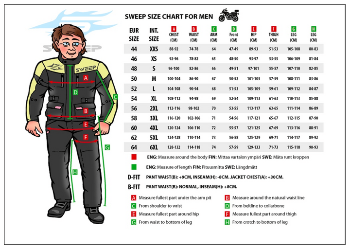 Takissa on täysin CE: n hyväksytty kuusikulmio © Sekä hartioille että kyynärpäille, suojauksissa on erityinen ja testattu muotoilu, nimeltään "Honeycomb -rakenne", joka saa suojan seuraamaan vartaloa paljon paremmin kuin MC -takkien perinteinen suojaus. CE -hyväksytty takaisinsuojaus (taso 1) on saatavana lisävarusteina.
