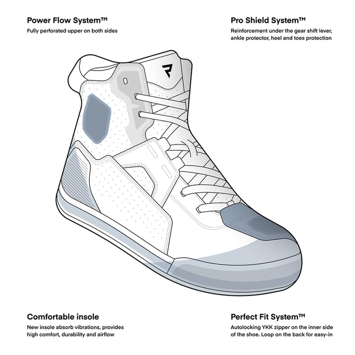 Rebelhorn Vandal II ovat täydelliset moottoripyöräkengät niille, jotka etsivät tyylikästä, mukavaa ja turvallista kenkiä päivittäiseen kaupunkiohjaimeen. Nykyaikaisella suunnittelullaan ja toiminnallisella rakenteellaan nämä lenkkarit yhdistävät sekä muodin että turvallisuuden parhaat puolet - täydelliset kaupunkien moottoripyöräilijälle.