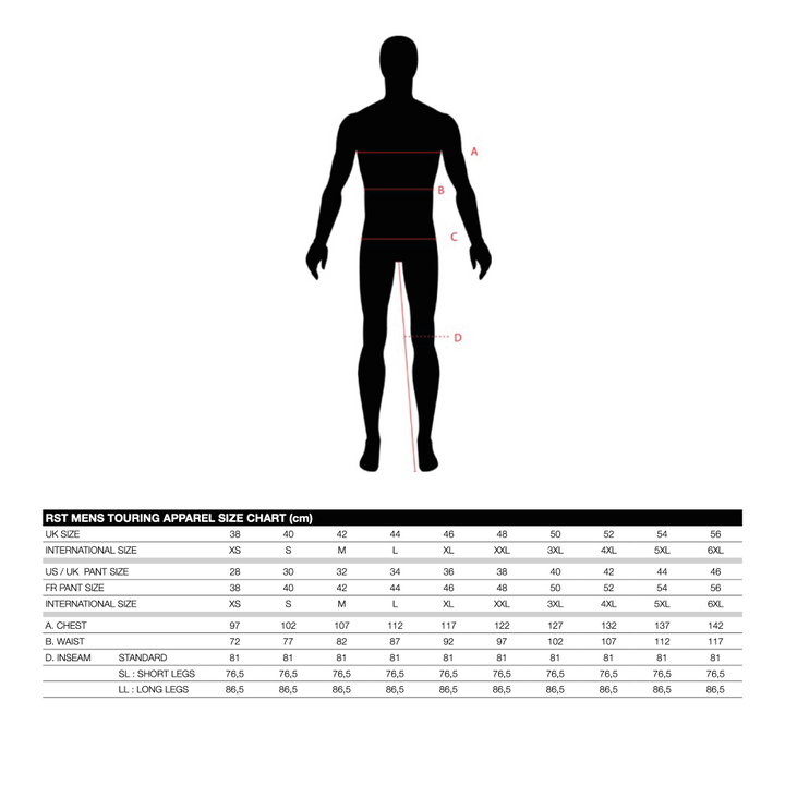 Ensimmäinen on yksi moottoripyörävaatteiden ja asusteiden tunnetuimmista ja arvostetuimmista Yhdistyneen kuningaskunnan valmistajista. Yli kolmekymmentä vuotta, RST on luonut vaatteet, joille on ominaista vakavaraisuus, houkutteleva muotoilu ja huomaavaiset, käytännölliset ratkaisut.