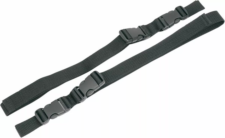 Mukana on kaksi pituuden säätämistä nylonhihnaa; Jokainen mittaa 38 "l Kun soljet ovat kytkettynä, jokainen hihna sisältää yhden uroksen ja yhden naisen soljen sekä toisen urospuolisen soljen ommelun hihnaan, joka kytketään useimpiin satula -matkalaukkuihin, kaksi erillistä naarasoljasta