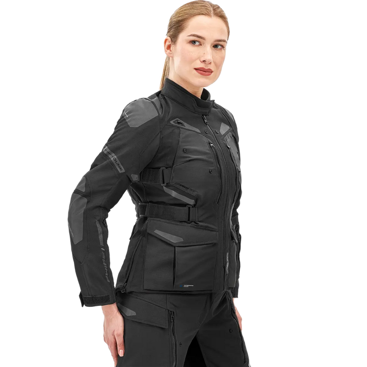 Kanssa Lady Fit-Suunnittelu, venytyspaneelit ja hyvin harkittu säätö vyötäröllä, rintakuvalla, olkavarsilla ja ranteilla, istuu Dune Lady niin kuin pitäisi. Se seuraa vartaloasi - ei päinvastoin. Erittäin korkea kaulus pehmeällä neopreenilla tarjoaa mukavuutta jopa pitkillä matkoilla, ja integroitujen vetoketjut antavat sinun paritella takin kanssa Dyynilainen housut Täydellinen kiertuepuku.