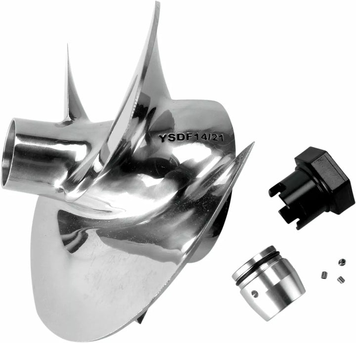 Terän geometria, joka on suunniteltu erityisesti korkealle pakkaussuhde-suihkupumpujärjestelmille, yksinoikeudella napapään vesitiiviste pitää ilkeät tavarat arvokkaista osista, parantaa kiihtyvyyttä ja yläpäätä samalla kun eliminoi suorituskyvyn peilien heikottu viimeistely ja kiillotettu napaväritys kavitaatio, imukellerikenttä määritetään valu, ei taivutus. Suurempaa nousukulmaa suositellaan modifioituille moottoreille; Pienempää nousukulmaa voidaan käyttää myös modifioitujen moottorien kanssa, jos halutaan parannetun kiihtyvyyden.