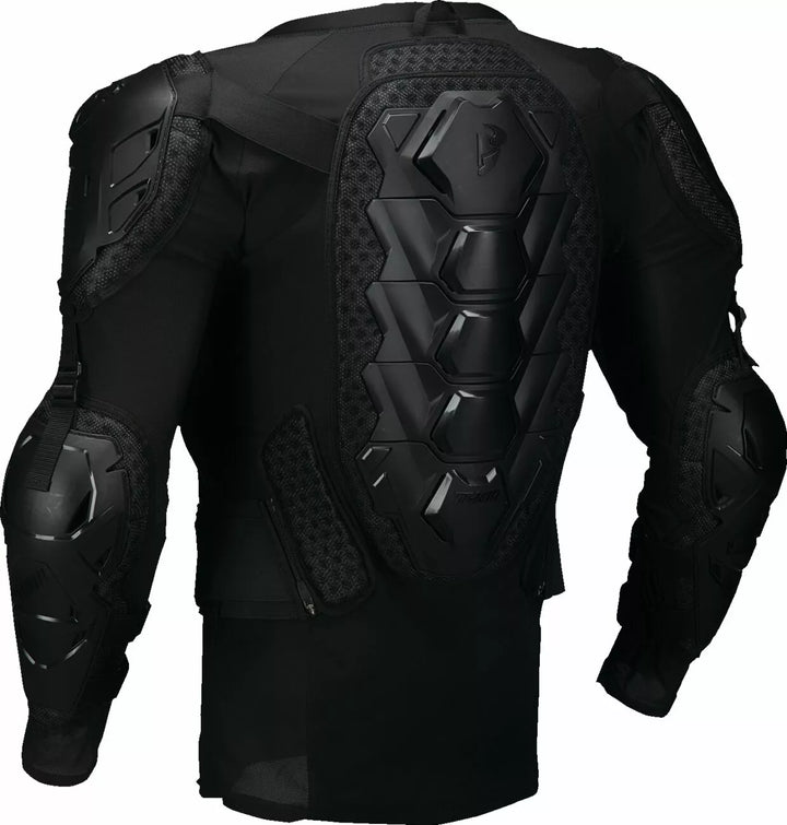 Lycra-kaulus ja litteät ommeltut saumat minimoivat ärsytyksen, 4-suuntaisen venytetyn poly-mesh-rungon rakenteen liikkuvuuden ja jäähdytyksen kannalta, täyspitkän vetoketjun helpon pääsyn vuoksi, irrotettavat vaikutusten suojaustyynyt, täydellinen vaatekappaleetesti ja sertifioitu ja sertifioitu suojaus täyttävät EU: n standardien 1621-2: 2014, Elbowin vaikutusvaikutusvaatimukset. Vuodena. Vaikutussuojaus vaatii 1621-3: 2018, taso 2