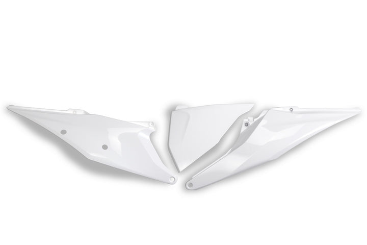 UFO-muovit tunnetaan laadustaan ja maastoajokäyttöön tarkoitetusta kestävyydestään. Ne on suunniteltu OEM-muovien kaltaisiksi ja ne on helppo asentaa. Nykyiset MXGP huipputiimit ja entiset maailmanmestarit käyttävät niitä. OEM-tyyppi UV-, isku- ja vääntöä kestävää injektoitua muovia. Väri: Valkoinen