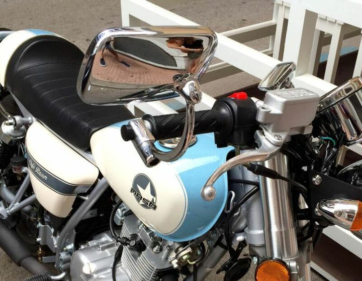 OEM-tyyppinen peiliKatu laillinen Kokoaminen: Kahva Väri: Kromi Kiinnitys: Ohjaustangon sisällä Hyväksyntä: CE-hyväksytty Sisältää vilkkuvalon: Ei Materiaali: Muovi Peilin korkeus (mm): 90.0 Peilin leveys (mm): 135.0 Sijainti: Vasemmalle + Oikealle Muoto: Suorakulmainen Kierre suunta: Oikea