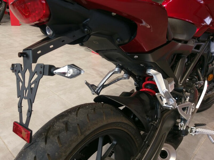 V PARTS rekisterikilven pidikkeet valmistetaan Ranskassa. Huomaamattomat ja täydellisesti viimeistellyt, ne on erityisesti kehitetty liitettyjen pyöräkäyttölistan sovellukseen. 2 mm ohut mutta tukeva teräksinen rekisterikilven pidike Musta epoksimaalattu CNC-valmistettu – laserleikkaus: tarkka viimeistelyReiät rekisterikilven, vilkkujen ja rekisterikilven valaistuksen kiinnittämiseenValmistettu Ranskassa Sisältö: Katu käyttöön hyväksytty rekisterikilven valaistus, EU:n sertifioituSäädettävä heijastinlevyHeijastin, EU:n sertifioitu Lisätietoja: Optimoitu ja huomaamaton kaapeliväyläNopea & helppo asennusSäädettävät vilkkujen pidikkeetSopii EU-kilvilleVilkkujen väli: 170 - 220 mm Väri: Musta Materiaali: Teräs