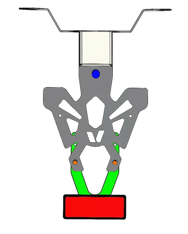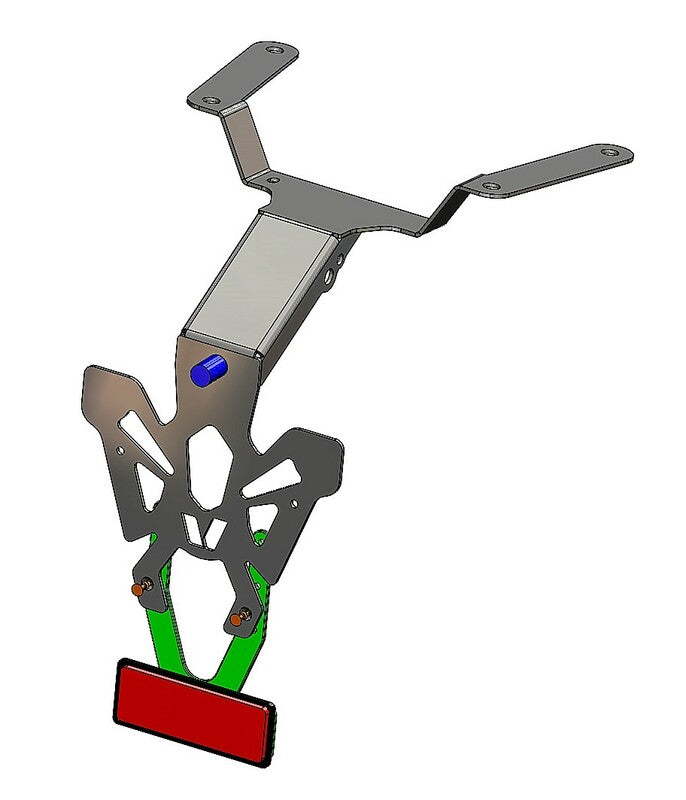 V PARTS rekisterikilven pidikkeet valmistetaan Ranskassa. Huomaamattomat ja täydellisesti viimeistellyt, ne on erityisesti kehitetty liitetyn pyörän sovelluslistalle. 2 mm ohut mutta kestävä teräsrekisterikilven pidike Musta epoksimaalattu CNC-valmistettu – laserleikkaus: tarkka viimeistely Reiät rekisterikilven, vilkkujen ja rekisterikilven valaisimen kiinnittämiseen Valmistettu Ranskassa Sisältö: Katu-uskottava rekisterikilven valaistus, EU-hyväksytty Säädettävä heijastinlevy Heijastin, EU-hyväksytty Väri: Musta Materiaali: Teräs