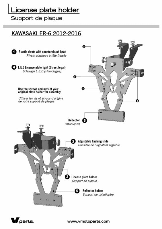 V PARTS Rekisterikilven pidike musta Kawsaki ER6 C8-SPK001