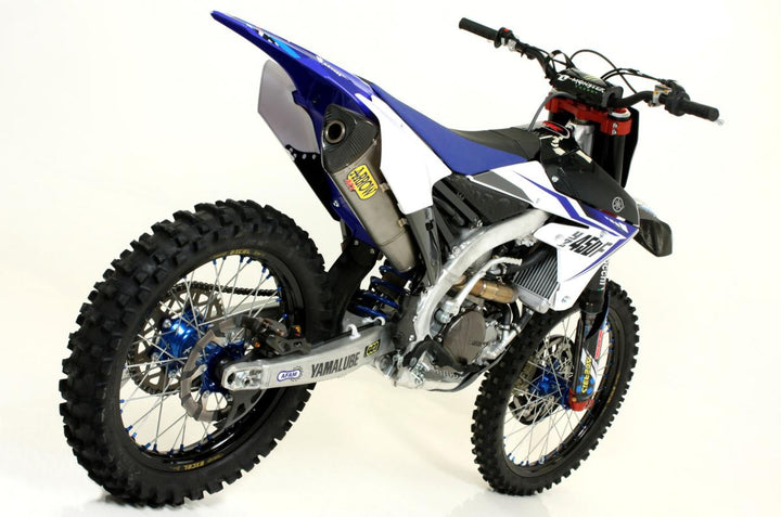 Yamaha YZ 450 F 14 MX -kilpailu Koko järjestelmä pokaalin äänenvaimennuksella ja hiilellä päätykorkki